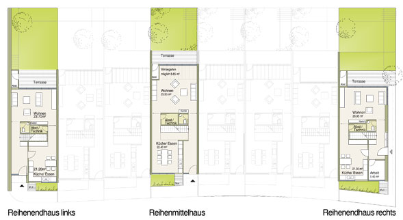 Im Bereich der Dachterrassen entstehen durch begrünte Pergolen Rückzugsbereiche