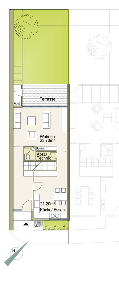 Nebenraumkern. Die Wohnbereiche gruppieren sich um